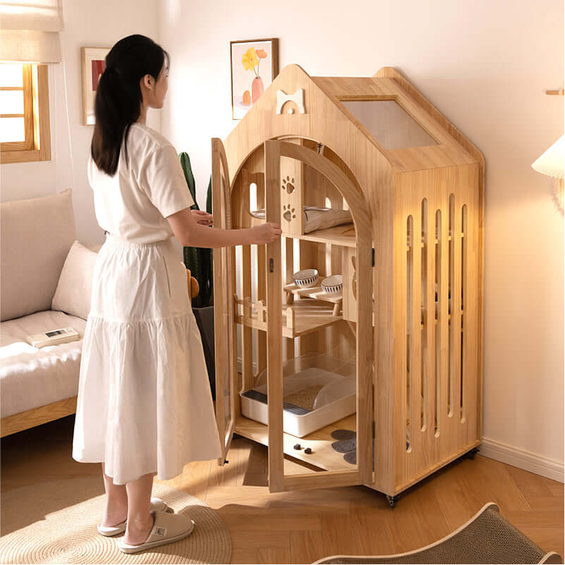 Wooden Cat House Luxury Villa – Indoor Play & Rest Furniture for Cats