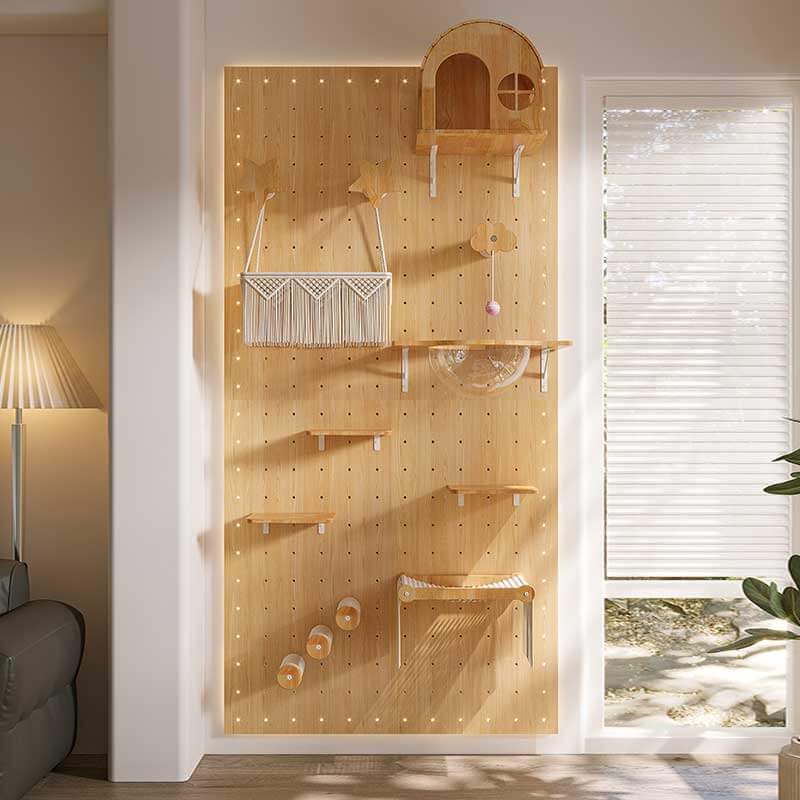DIY Solid Wood Cat Wall Shelf with Holes – Wall-Mounted Climbing Panel for Cats