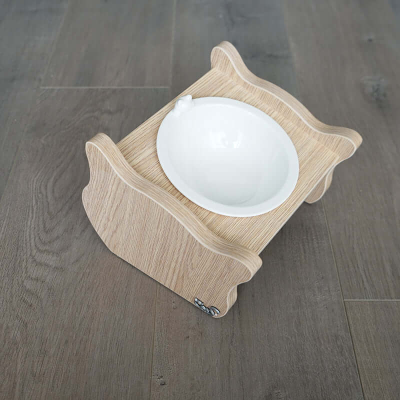 Elevated Slanted Wooden Cat Bowl Stand