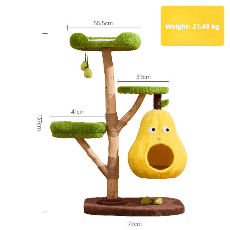 Unique Pear Cat Tree Tower: Natural Wood with All-Season Cat Bed