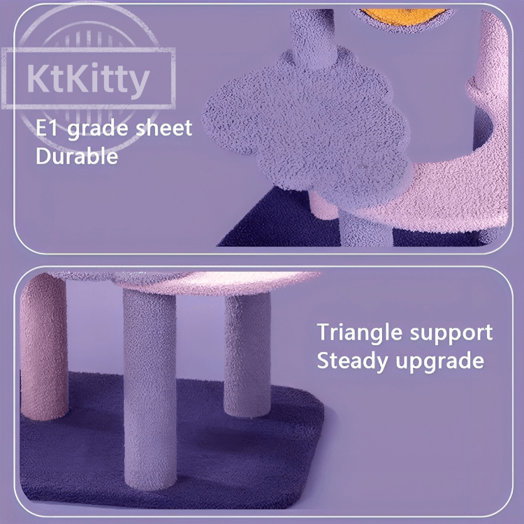 This angled sisal scratching Moonlight Cat Tree has 45ยฐ angled sisal boards and sisal-wrapped posts. Cats can scratch naturally, keep their claws healthy, and furniture stays protected.