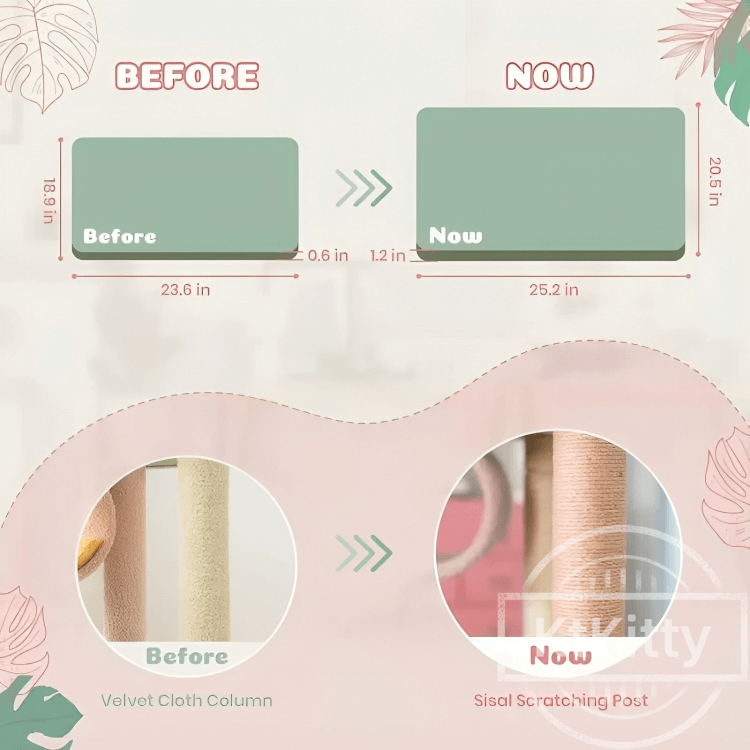 Every support post is wrapped in high-quality durable sisal. This space-saving scratching post satisfies natural instincts and protects your furniture. The integrated soft condo and hanging toys provide premium entertainment without the bulk of traditional cat furniture.