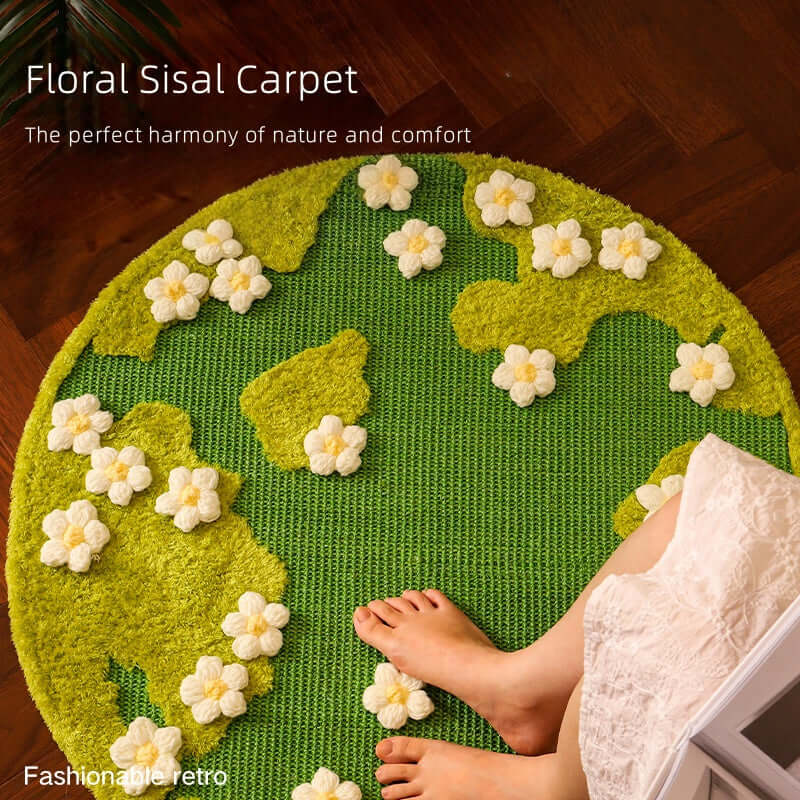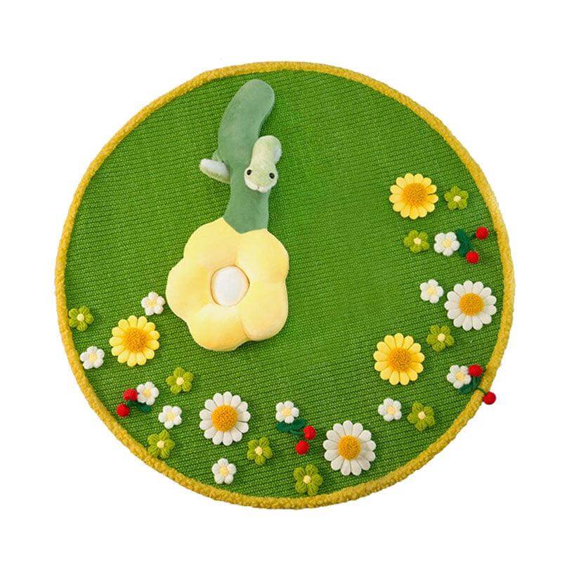 🌼 Blooming Garden Cat Scratch Mat – Round Floral Rug for Cats