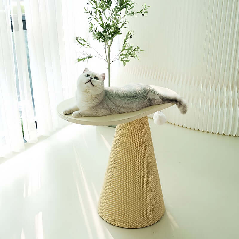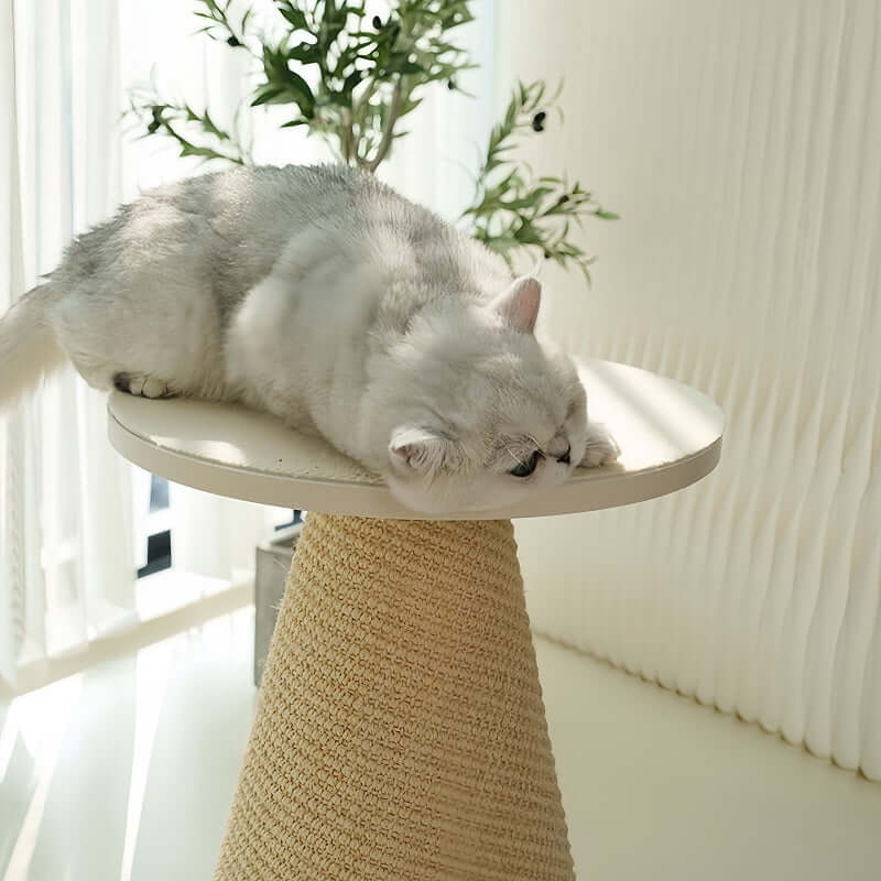 The conical sisal scratching post is wrapped in double-layer non-dyed sisal. It resists fraying and lets cats scratch and climb naturally.