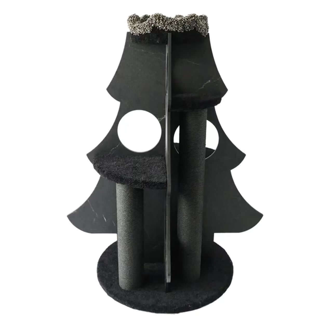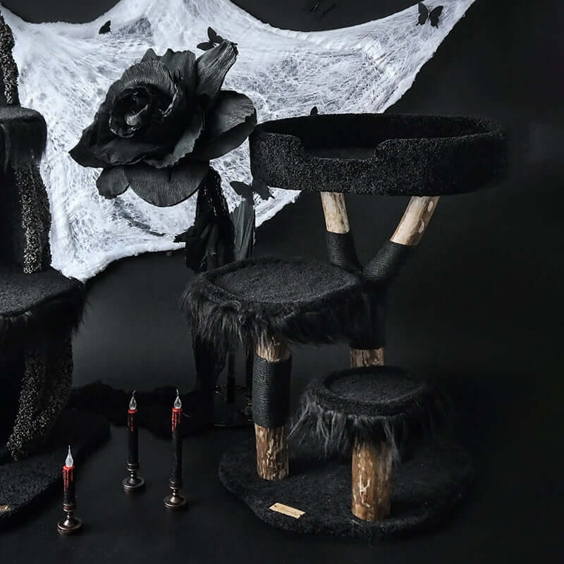 Use this black cat tree to enhance your Halloween setup or as a year-round decorative cat climbing structure. Matches various home and holiday themes.
