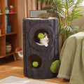 This original Tree Stump Cat Tree solves the space dilemma for small homes. It integrates human furniture (side table, stool) with a complete cat center (condo, scratcher, tree). Stop sacrificing style—this shared furniture makes your home tidy and stylish.